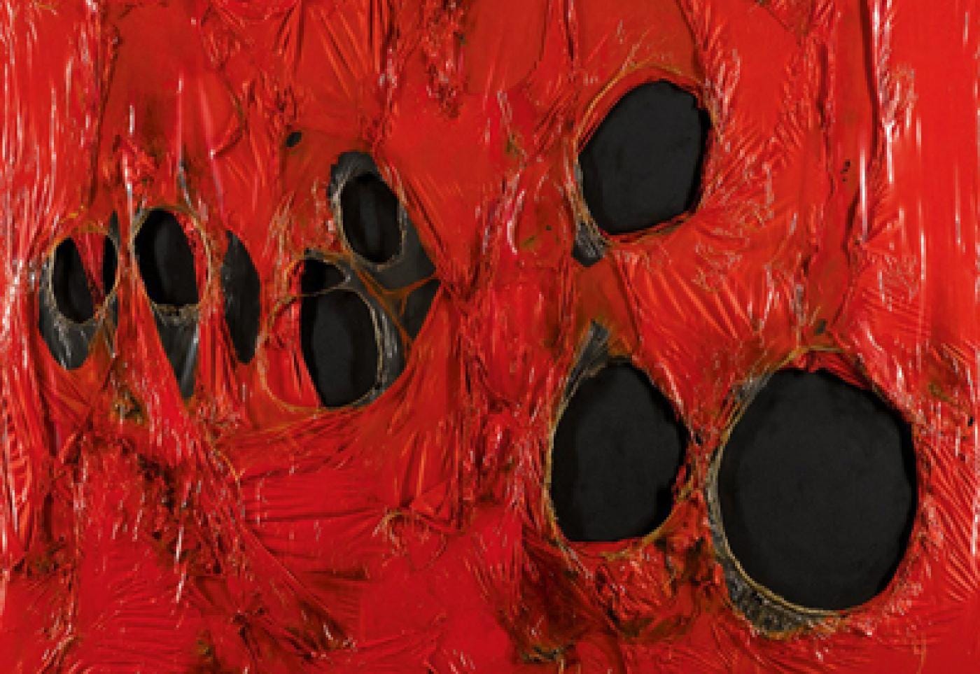 Rosso Plastica è un quadro realizzarto da Alberto Burri nel 1963 con colore acrilico e plastica bruciata e solidificata con vinavil. La materia in Burri acquista una sua preziosità grazie alla colla vinavil che vetrifica e raffredda i materiali feriti dalla violenza della fiamma. Anche se si è messo a dipingere da adulto dopo una carriera di ufficiale medico, Burri è un vero pittore, e come tale usa fiamma ossidrica, pennelli, colori e materiali da pittore attento alla forma, alla materia, alla composizione. Ma tutto si costruisce intorno all'elemento distruttivo, o quanto meno modificante come la fiamma.