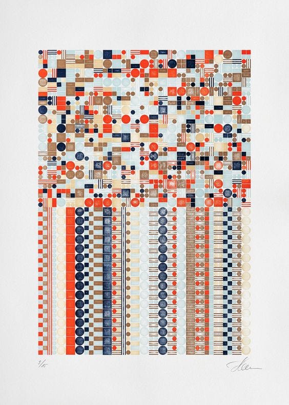 "Glitch A.Sc.1" è il titolo di un poster realizzato dallo studio tedesco Stellavie con una stampa letterpress su carta pregiata, che mi ha dato lo spunto a riflettere su che cosa intendiamo quando pensiamo al "mettere in ordine".