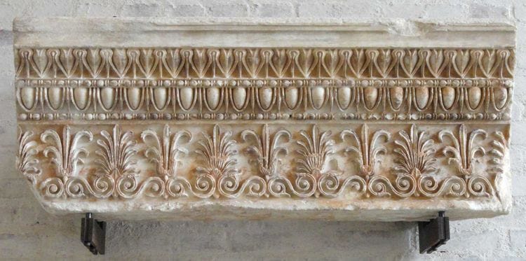 L'ordine fin dall'antichità è stato associato ad un'idea di bellezza. E l'ordine include i principi di incasellamento, di ripetizione, di concordia ben rappresentati in questo fregio dell'Eretteo di Atene (V sec. a.C.). Il termine greco "kosmos" si contrappone a "kaos" e significa sia "ordinato" (cosmologia) sia "bello" (cosmetica). L'ordine va inquadrato nella teoria del campo secondo cui un sistema di regole vale all'interno di un campo, e non fuori di esso. Per esempio, all'interno del campo di calcio non si può toccare la palla con le mani, all'esterno sì. Nel caso del nostro fregio la regola è ripetere lo stesso elemento nelle due fasce superiori, alternare i due tipi di palmette nel fregio vegetale, ripetere le volute della fascia bassa in contrapposizione simmetrica.
